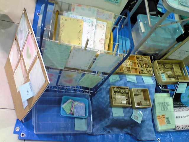 はんこ以外にはイラスト(パステル画・色鉛筆画中心)・切り絵などをブースに置いていることも。