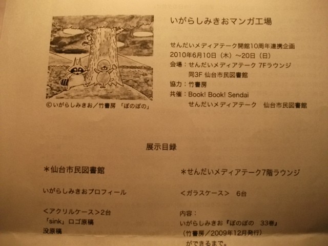 この後、またもと来た道をゆるゆるてくてく歩きながら引き返し、せんだいメディアテークで開催されている「いがらしみきおマンガ工場」へ。
