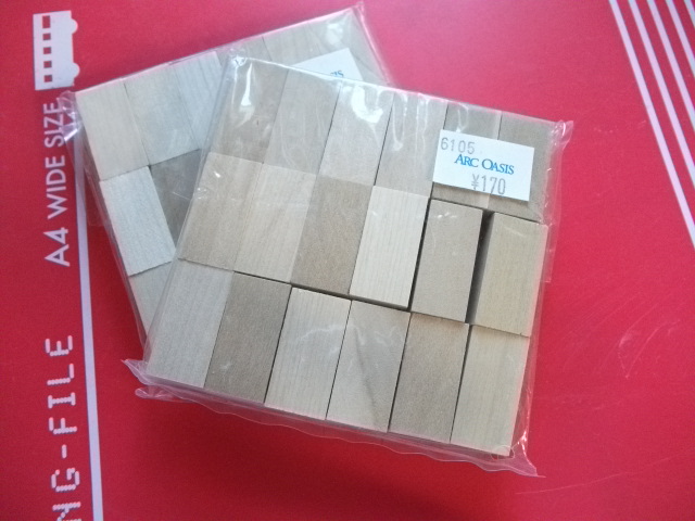 市販のタイル用にカットされている木材を使うこともありますが、小さいはんこの持ち手に使うためのものは地元ではなかなか見つけられません・・・