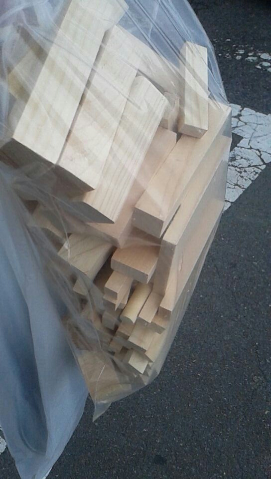で、今回の場合は、それよりもっと細かい木材。棒状のもののカット余りなどが多い印象です。私にとっては好都合(笑)