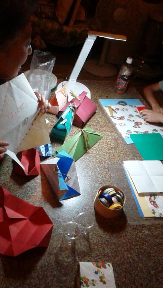 【色画用紙で箱っぽく】比較的入手しやすい色画用紙も、折り方をちょっと工夫して、包装紙やマスキングテープを貼り付ければ