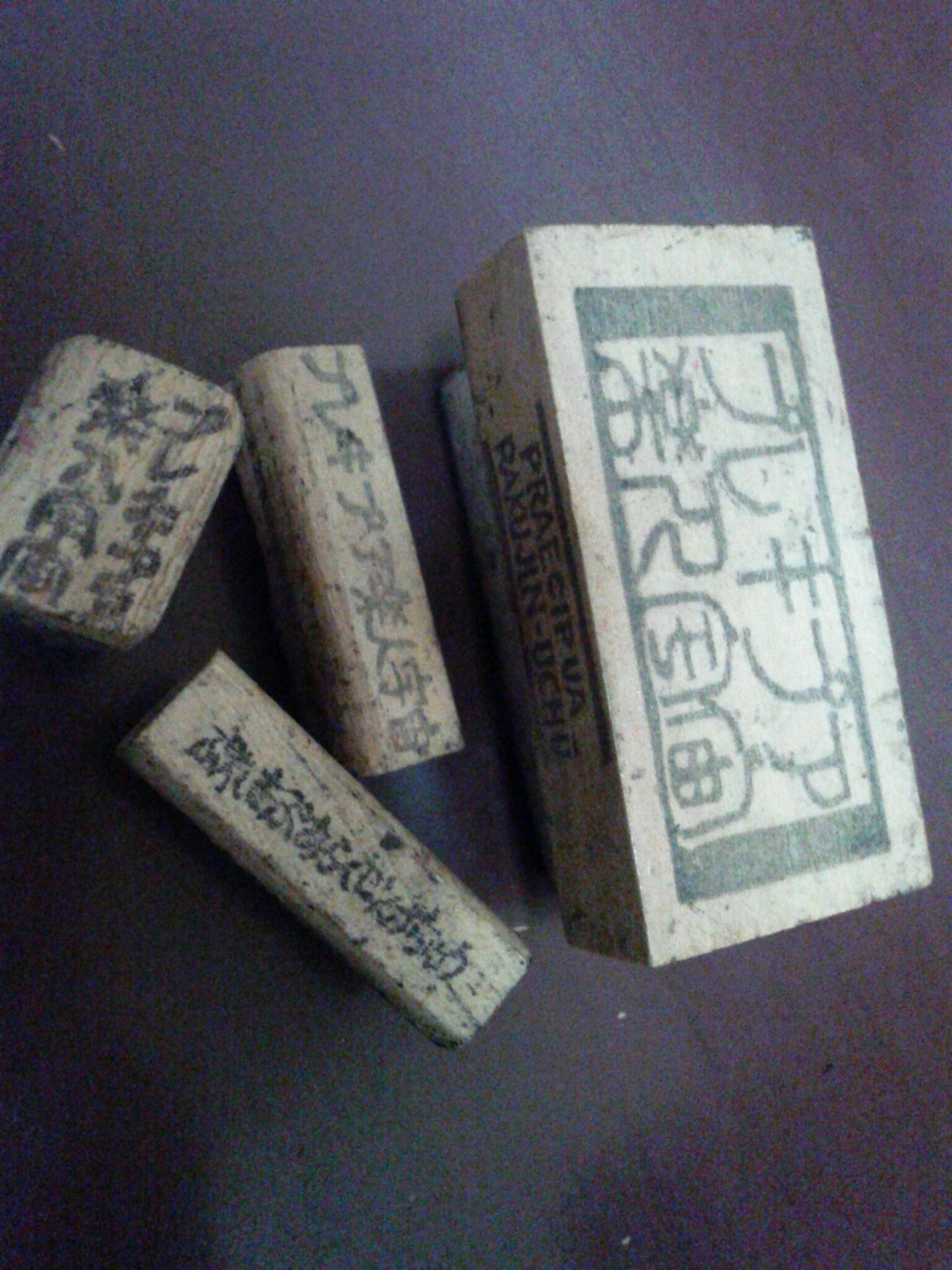 昨日の記事をupしてから、古川の携帯ショップさんに。システム自体は大丈夫だけど、充電ができないので、修理か機種変更か。 (´д`|||) それなら、と機種変更することに… スマホに!v(・∀・*) そんなわけで今日からこの「1日1はんこ」もスマホ経由で(^-^)/ 今日の写真は、いつも私がお世話になりまくっているロゴはんこたち。一番大きいロゴはんこは、6年前に作ったはんこ! まだはんこ用消しゴムではなく普通の消しゴムを使っていた頃の制作。でもまだ壊れず働いてくれてます!ありがたいね~\(^o^)/