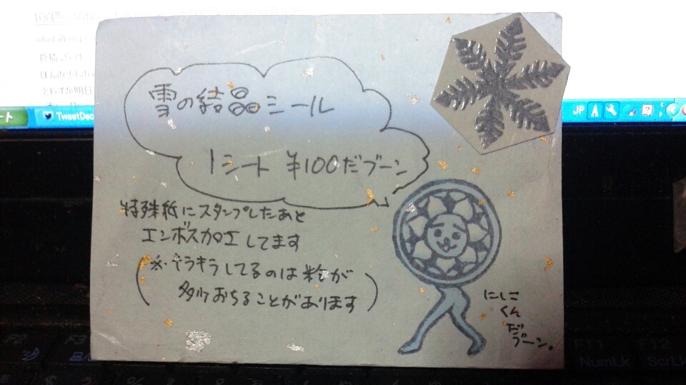 その中の1つ、「にしこくん」はんこを、雪の結晶シールのアピール係に任命したよ!