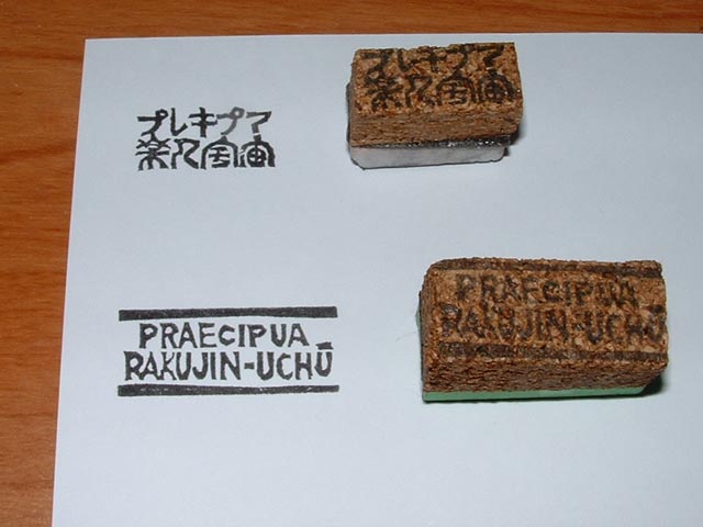 参考までに…このブランドのロゴはんこ(持ち手の脇に押すはんこ)ですが、上のカナ+漢字のはんこは1cm×2cm。下のアルファベット表記のはんこは1.3cm×3cmです。かな・アルファベットであれば3mm角程度、画数の多い漢字なら5〜6mm角が限界かな…(今のところ)