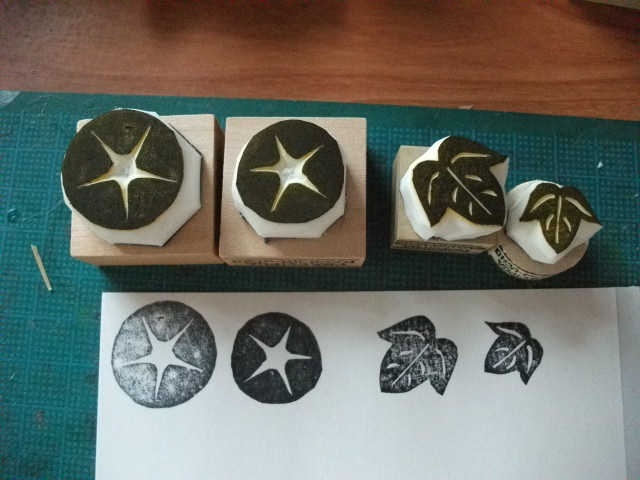 「朝顔」はんこ4つセット(1400円・インク付1900円)