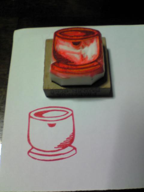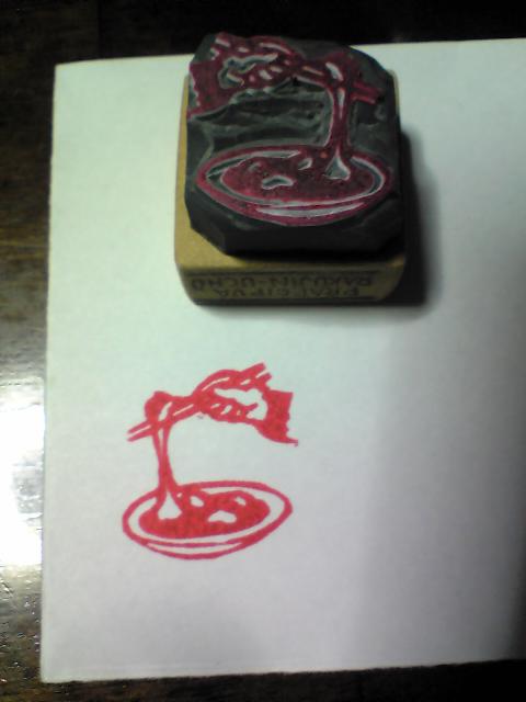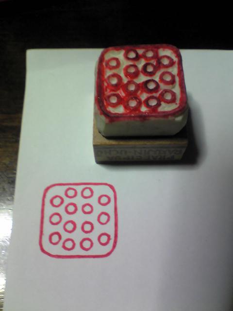 店のロゴマークに使われてる臼と杵の柄だけ使って彫ってみたたはんこ。