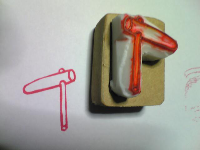 いつもの「イニシャルはんこ」などと同じように3cm長さの持ち手を使いました。