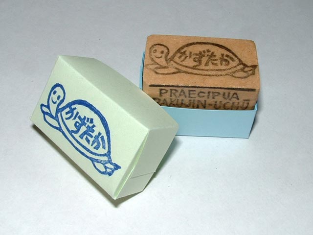 ケースの色は、男の子向けということもあるのですが、かめのデザインと言うことで緑や青の色上質紙(名刺などに使えるくらいの、厚手の物)で作成致しました。