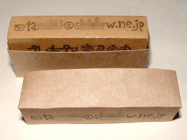 版面が細長い割に、はんこ自体の高さを高めにして押しやすくしています。通常使う持ち手用のMDFを、カット面が上下になるように接着しているので、水性ニスがのりにくく一時はどうなるかと思ったのですが、なんとか他のオーダーはんこと同様の仕上がりにすることができました。