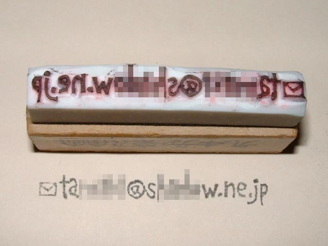 手紙にちょっと添えるように押したいと言うことで、いくつかデザイン案を出したうちの一番シンプルなもので制作となりました。サイズとしては2×2.5cm程度(ほどほどサイズ:文字&イラスト扱い)。制作料金は¥2400です。