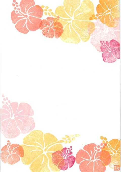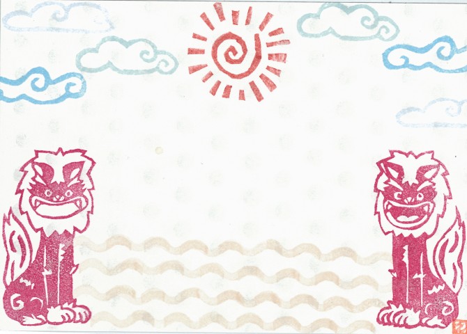 「シーサーとハイビスカス」のハイビスカスは、ハイビスカスポストカードのものと同じはんこを使ってますw