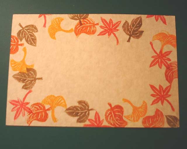 昨年末に、自分づかい用に作った葉っぱはんこで作ったものです。