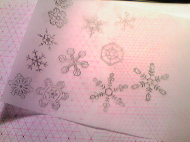 雪の結晶は(参考サイトを見ていただけるとわかりやすいのですが)本当に様々な形をしているので、彫っても彫ってもキリがないくらい種類が有りますね。また、中には正六角形じゃなくて棒状のものや鼓状のものがあったりとなかなか奥深いです。
