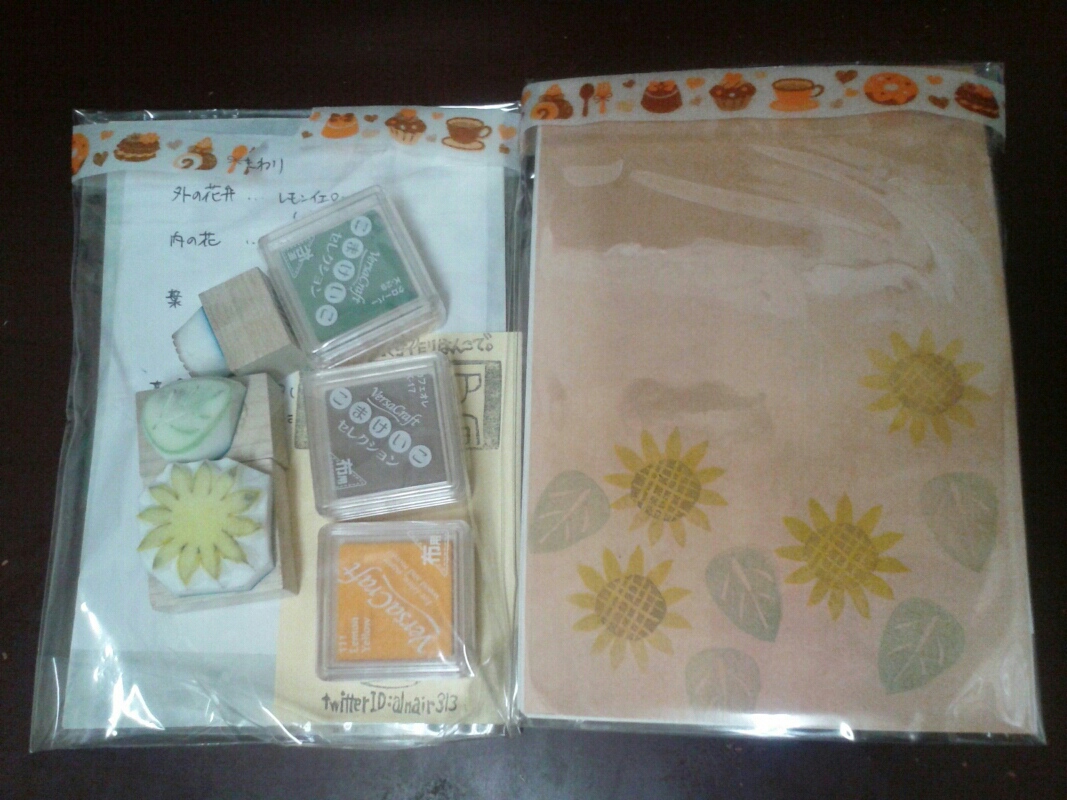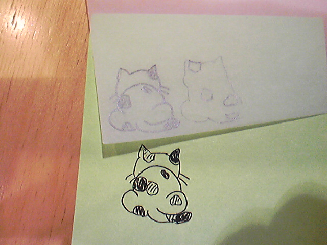 で、上の写真の消しゴムを彫るとこうなるのですー。