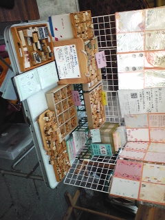 はんこ以外にはイラスト(パステル画・色鉛筆画中心)・切り絵などをブースに置いていることも。