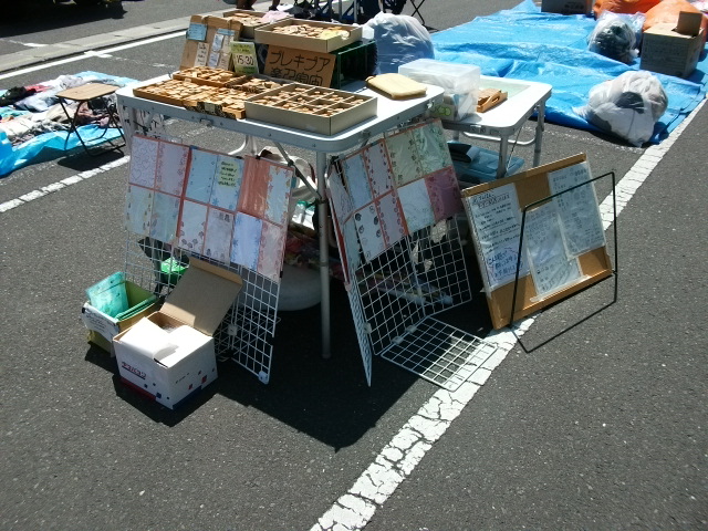 しかも、強風でパラソルが飛んだときとディスプレイの骨組み(ワイヤーネット)組み終えたものが飛んだ時と2回もこまごましたものを吹っ飛ばされたので、かなり遠くまで飛んでしまって行方不明になったブツも(泣)