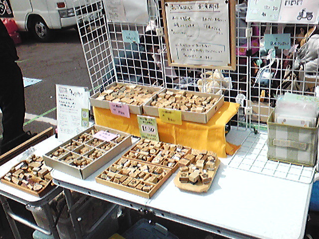 大体月に1~2回のペースで仙台を中心とした宮城県内の手作り系イベント・フリマなどに参加しています。ブース内ではほとんど毎回消しゴムはんこの制作実演を行っており、その場でオーダー彫りもいたします。(デザイン・サイズによって後日渡しの場合もございます)