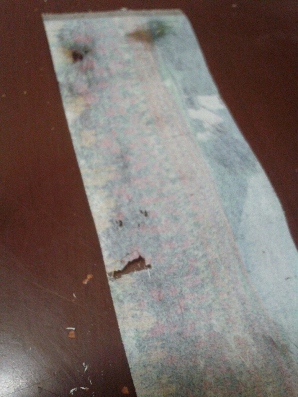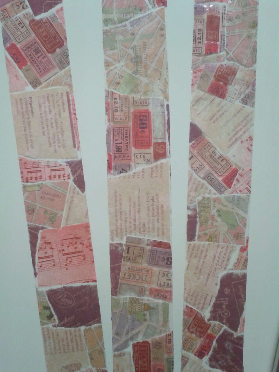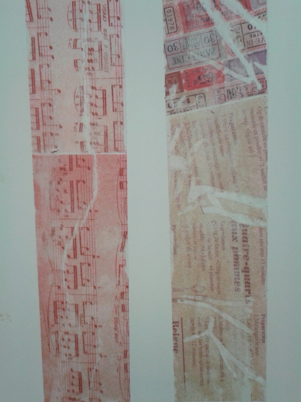で、その、ちぎった切れ端も使ってみたくなり、パッチワークみたいに細かいものをツギハギするように貼ってみました。