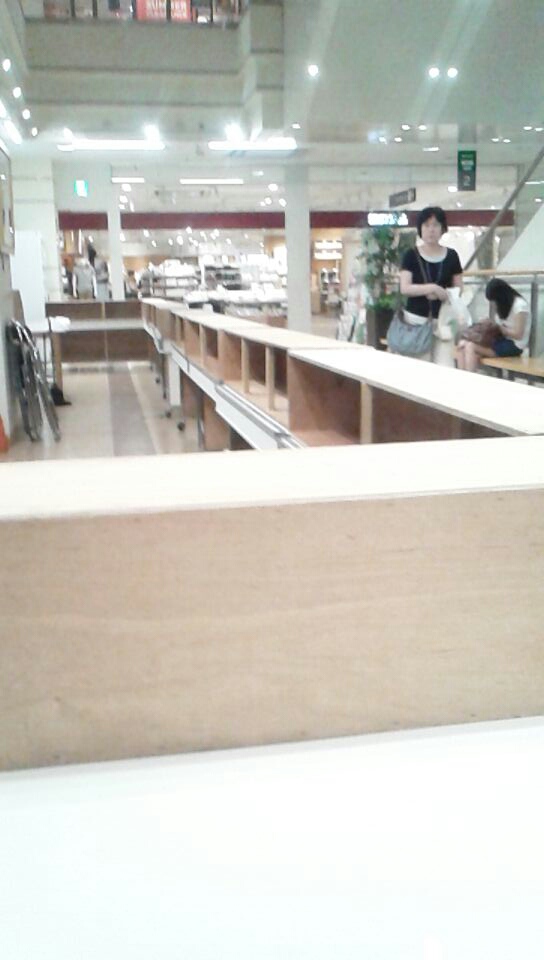 別な団体さんの催事が終わった所で、品台などの什器を配置換え。