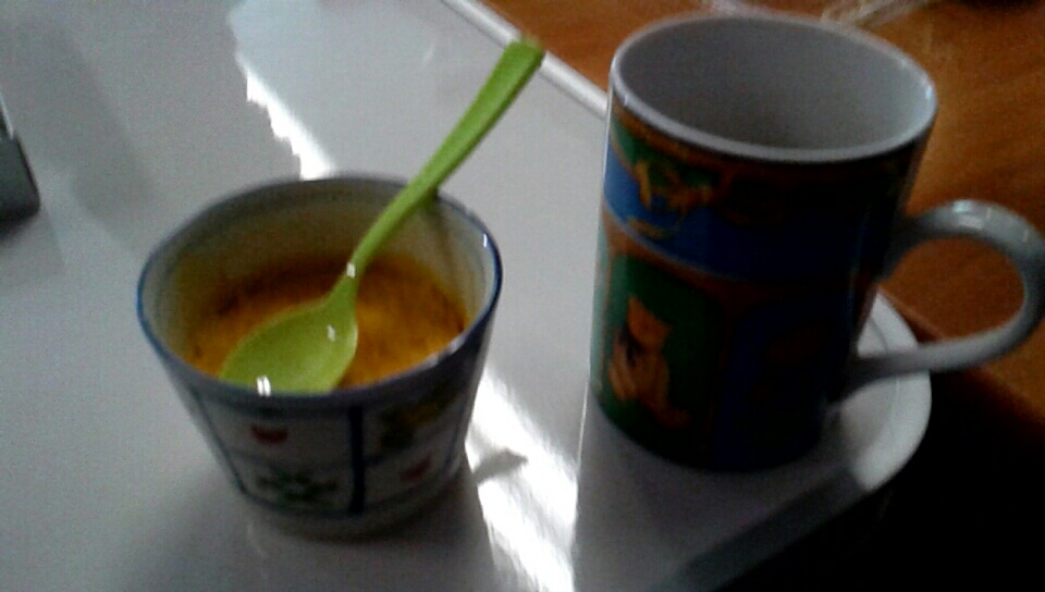たかのさんのかぼちゃプリンと、るりはさん監修のまめもみ屋さんのサービスハーブティー。