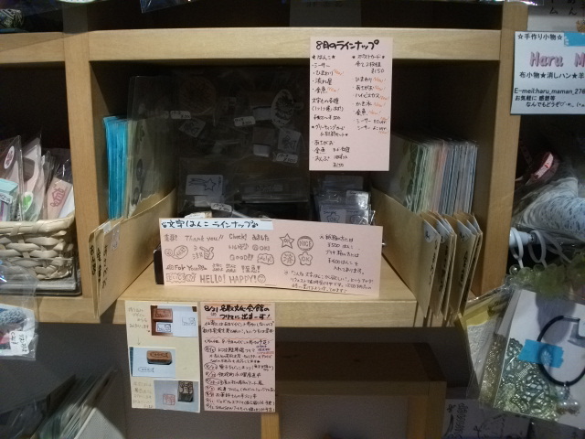 ・文字もの各種(はんこを入れている箱の前に全ラインナップを紹介するPOPつけてます)