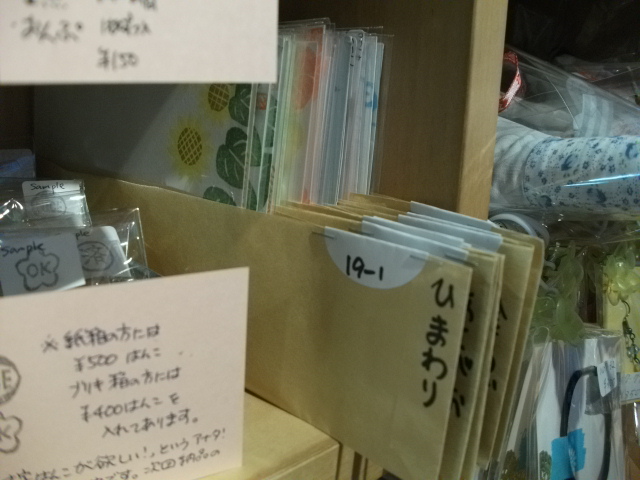 両隣がどちらも消しゴムはんこを扱っている作家さんの箱なのですが、その作家さんによって趣が異なるのでそれはそれで良し☆