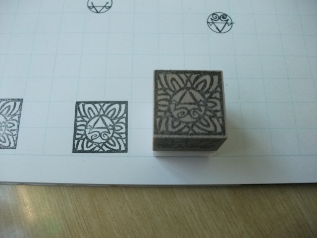 そんなわけで、かつては醤油ラーメンなんかを食べたそのテーブルではんこ彫りですよ…