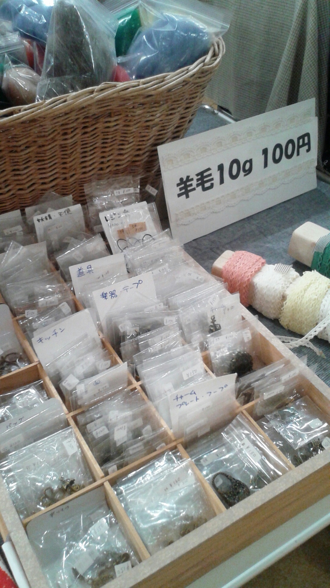 作家さんの作品だけではなく、羊毛や金属パーツ、レースなどの販売も。